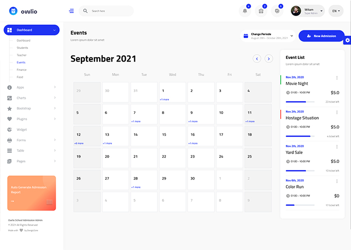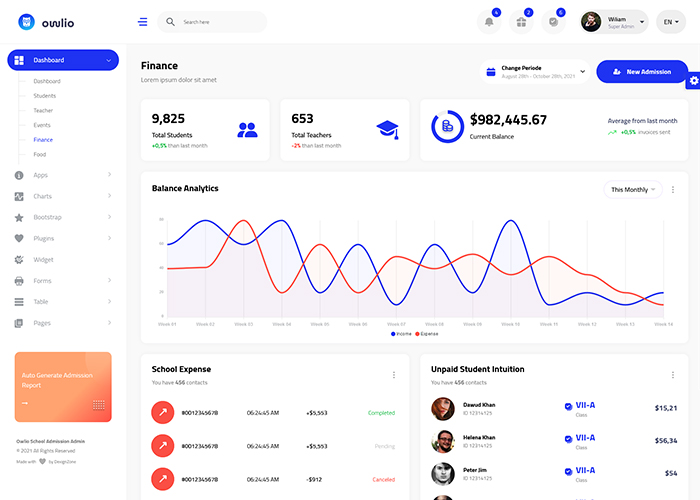 Owlio - PHP School Admission Admin Dashboard Bootstrap Template